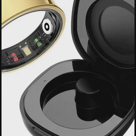 Place the ring into the portable charging case. The case holds extra charge for multiple full ring recharges so you can go days without plugging in.